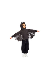 The coolest dark grey hoodie with bat ears, made in a super soft cotton fabric. The long sleeves has shiny batwings attached, for the optimal halloween-bat feeling. The hood is lined with the same soft cotton fabric as the outside of the hoodie.