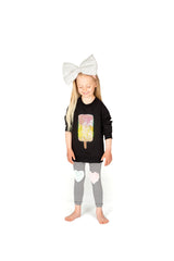 You could never go wrong by wearing comfy leggings! We mixed the classic black and white horizontal stripes with colourful furry hearts. Yes, furry! All for that Wauw Capow cosiness!
