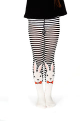 Nosy Ninus is our pair of cosy organic cotton tights with feet. The black and white horizontal stripes give a classic element to the tights, while the two bottom bunnies give that Wauw Capow funky twist! Most of the time more is better, so we encourage you to go wild and match these tights with even more colour and pattern!