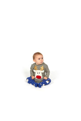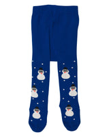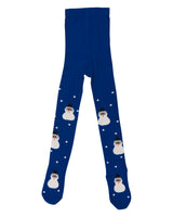 WAUW CAPOW by Bangbang Snow Flake, is a pair of blue tights with feet, featuring little white snowmen and white dots that looks like it's snowing. These tights are truly adorable and will bring you that Christmas feeling of playing in the snow.
