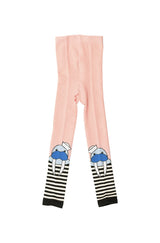 WAUW CAPOW by Bangbang Wally is a pair of pink tights, featuring a walrus in a sailors hat on each leg. The bottom of the legs are black and white striped. These tights are part of our aquatic summer collection, featuring numerous of cool and playful aquatic designs. The walrus design being one of our favourites, amongst his aquatic friends, and surely will be yours too. The cotton in these tights is organic.