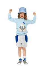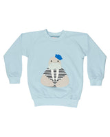WAUW CAPOW by Bangbang Captain is a soft blue sweatshirt featuring Captain walrus in a little blue sailor hat and a striped shirt. This light-sweatshirt is part of our aquatic summer collection, featuring numerous of cool and playful aquatic designs. Captain walrus is loved and adored by all of his aquatic friends, since he is the strongest yet friendliest of them all. This light sweatshirt is designed to project all of Captain’s charisma and strength.