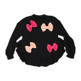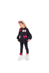 Our Willa Bow blouse is made in a soft black organic cotton fabric, with a big frill attached at the bottom. We have added pink and soft coral bows to the front in a soft mesh fabric for a fun and playful look. For a matching outfit, we recommend pairing this blouse with our Gia leggings, with the same beautiful bows at the bottom.
