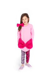 The Ursula Pink dress is an absolutely adorable and perfect dress for both everyday play and for that very special family gathering. Cookie has paired the dress with our Aggi leggings and a fantastic bow in the same material as the big beautiful bow on the dress - this gives the dress a more everyday cool look for your little one.