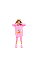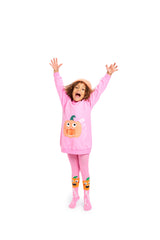 Harley Halloween is a super cute pink sweatshirt dress, with a brushed inside for a fleecy finish, perfect for thise colder days. This dress is made in a soft organic cotton, making it super comfortable to wear. We have added a fun/scary orange pumpkin to the front and the word ‘Boooooo’ in embroidered letters. This dress is perfect for Halloween and with its balance between scary and adorable, what's not to like.