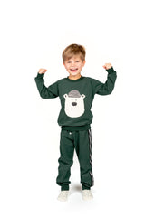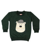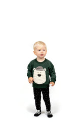 WAUW CAPOW by Bangbang Hello Teddy is a soft dark green sweatshirt, featuring a white polar bear in a hat, on the front. The fabric of the polar bear is furry and super soft - you just want to touch it! This sweatshirt is perfect for the colder days, where you just need to add a little extra cuteness to the outfit.