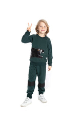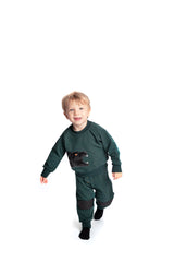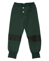 WAUW CAPOW by Bangbang Hero Pants have an elastic waistband, two gold buttons and black knee patches on the front. These cool pants are easy to dress both up and down depending on what you choose to match with. You can go all green and match with Blaise sweatshirt or you can choose any of our other tops. The possibilities are endless as Hero pants can match with everything! Use them for both boys and girls, baby and junior.