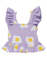 Our Beatrix top is back in our seasonal signature Egg print and we adore this version. It's playful and made in an oh so soft material, which just makes it that much more comfortable to wear. The top has ruffles at the straps and at the bottom that give the style a little extra. A simple design but oh so bold - We are in love!