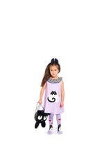 A beautiful black shoulder bag. The front has a black fluffy cat on it, made from faux fur and the bag compartment is made from a faux leather material in 100% polyester. The bag has a zipper, a beautiful purple lining and a black/white shoulder strap. It's the most adorable accessory.