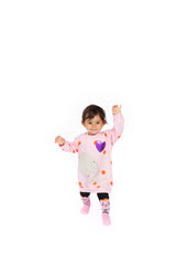 Our cool elephant Elly sits on this dress. She loves a good polka fabric and simply looks amazing, if we may say so! We have given this style a little something extra with the big polka fabric in pink and red - and sprinkled a little dash of cuteness by adding Ellen to the style - and as you can see, se loves it!