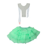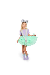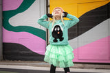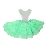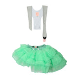 Our Fairytale Mint dress is made with a tiered mint ruffle skirt, giving the dress more volume. The skirt has an elastic waistband, for the most comfort when wearing it. The straps are adjustable and made in a silver shimmery fabric, creating an eye-catching effect. The straps can also be completely removed, for the option to only wear the skirt or add different straps from some of our other dresses.