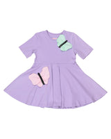 Farasha is a beautiful purple dress with added butterflies in a fantastic light fabric. The dress is made from organic cotton and the skirt is wide, which makes it absolutely wonderful for twirling around.