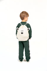 WAUW CAPOW by Bangbang I Rule is a pair of green pants, with a black and white stripe ribbon attached down the outer side of each leg. These pants has an elastic waistband and two gold snap buttons - there's also elastic at the bottom of each leg. These pants are super cool and could very well become an essential part of the wardrobe. these are perfect for playing both inside and outside - they are super comfy and you can easily dress it it both up and down.