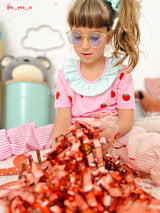 Cute! What says summer better than strawberries - and this t-shirt is filled with them. We have added a small mint collar for a little extra WAUW - it's to die for. If you are looking for more strawberry looks, we recommend our Alia Strawberry dress, our Strawberry Field tights and of course our Scrunchie Strawberry.