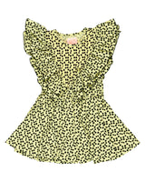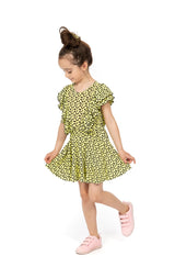 WAUW CAPOW by Bangbang Saydee is a yellow dress peppered with black dots, and ruffles from each shoulder to the middle of the waist. This summer dress is perfect for dancing and playing, catching everyone’s attention, as you radiate a joyful and lively personality. Perfect for any occasion.